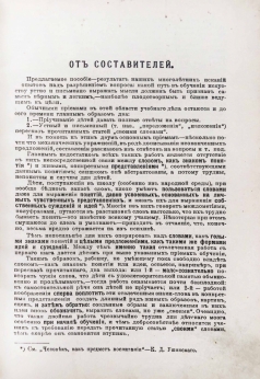 От составителей: Предлагаемое пособие — результат наших многолетних исканий опытов над разрешением вопроса: какой путь в обучении искусству устно и письменно выражать мысли должен быть признан самым верным и легким, — наиболее плодотворным и ближе ведущим к цели.