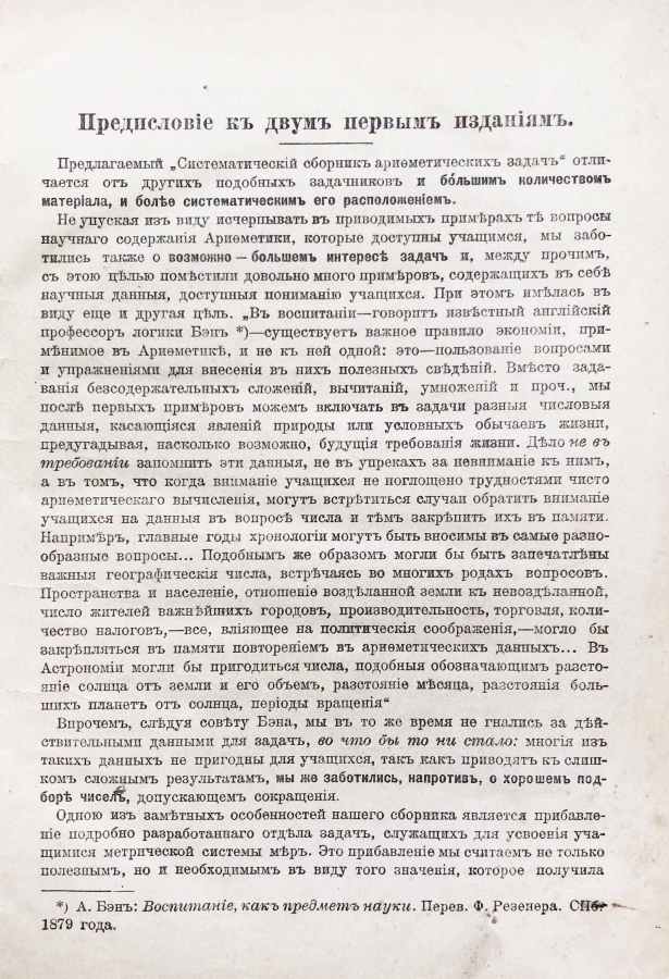 Полное название: Систематический сборник арифметических задач: Для гимназий и прогимназий, мужских и женских, реальных, уездных и городских училищ, учительских институтов и семинарий.