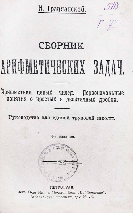 Арифметика целых чисел. Первоначальные понятия о простых и десятичных дробях. Руководство для единой трудовой школы.