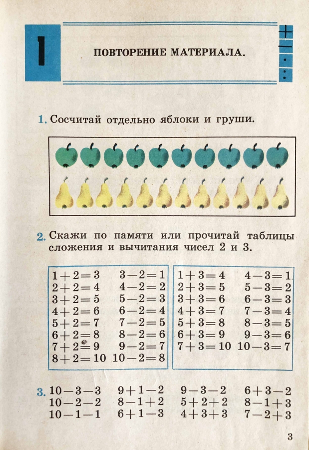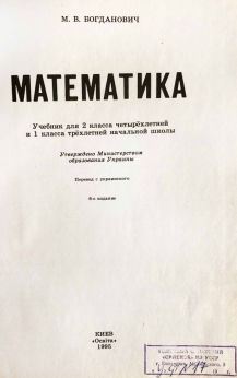 Учебник математики для 2 класса четырёхлетней и 1 класса трёхлетней начальной школы советской эпохи. Утверждено Министерством образования Украины. Перевод с украинского.