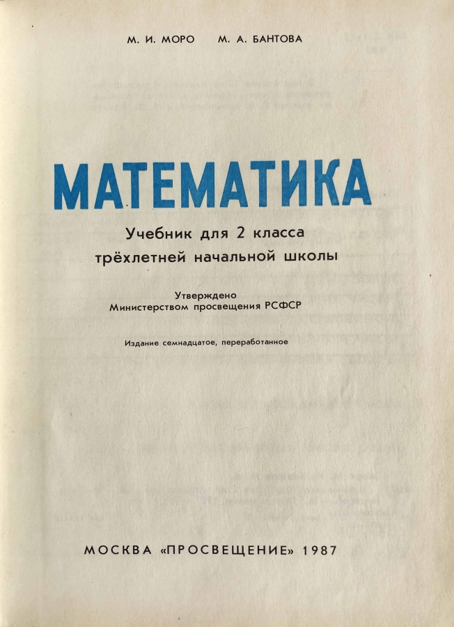 Учебник математики для второго класса трёхлетней начальной школы советской эпохи. Утверждено Министерством народного образования РСФСР.
