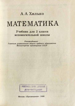Учебник математики для 2 класса вспомогательной школы советской эпохи. Рекомендован к изданию Главным управлением школ Министерства просвещения СССР.