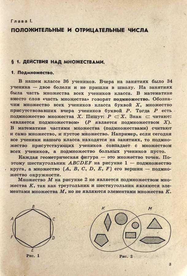 В нем содержатся разделы: «Положительные и отрицательные числа», «Рациональные числа». Начальные сведения из геометрии включены в оба раздела. В конце каждого пункта выделены упражнения для повторения и домашней работы.