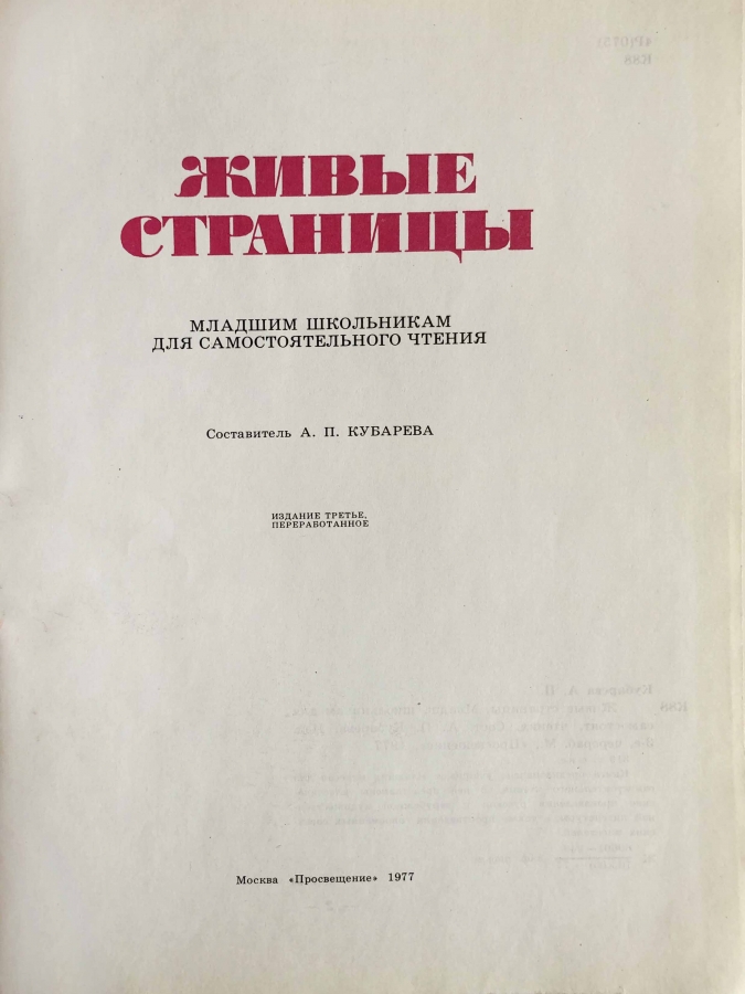 Предлагаем вашему вниманию книгу для внеклассного чтения в 3 и 4 классах "Живые страницы". Книга содержит множество цветных иллюстраций известных советских детских художников.