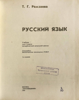 Учебник русского языка для второго класса четырёхлетней начальной школы советской эпохи. Содержание учебника направлено на обучение детей грамматике, правописанию и развитию речи. Утверждено Министерством просвещения РСФСР.