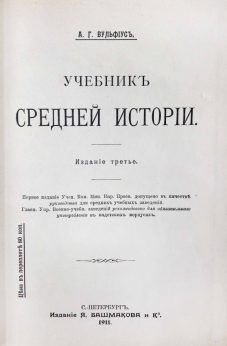 Александр Германович Вульфиус — российский и советский историк. Родился в семье прибалтийских немцев. А. Г. Вульфиус окончил Петришуле (Главное немецкое училище Св. Петра) в 1897 г. и поступил на историко-филологический факультет Санкт-Петербургского университета. После окончания Университета в течение 25 лет преподавал историю и географию в Петришуле. Будучи преподавателем, занимался и научной деятельностью, в основном изучая историю церкви и общественной мысли в Европе. Опубликовал несколько монографий по истории Западной Европы, учебники по средневековой и новой истории, неоднократно переиздававшиеся.