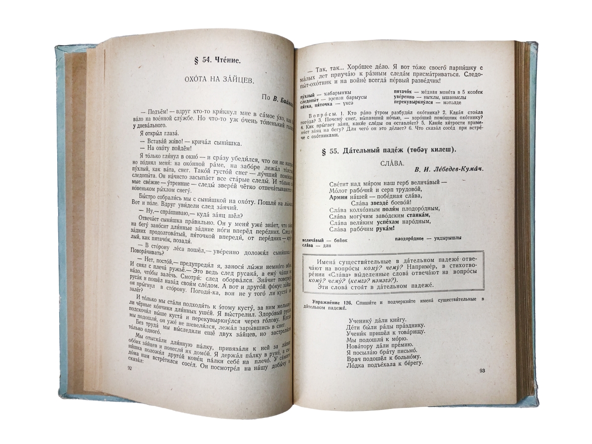Учебник для 4-го класса башкирской школы. В учебнике даны задания на чтение, составление рассказа по картинке и задание по грамматике для изучения языка.