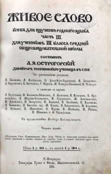 В предреволюционные годы появилось много работ, посвященных искусству звучащего слова. Многие из них имели в виду не только профессиональное искусство, но и школьное выразительное чтение. Были работы и специально посвященные школе. Из них наиболее интересна книга "Живое слово" А. Острогорского. Для всех, кто хочет вырастить интеллигентного, тонко чувствующего человека, научить читать по-настоящему, для души. Оригинальные рисунки, в том числе и на отдельных листах, выполнили для этого издания все ведущие художники начала ХХ века: Билибин, Вестфален, Добужинский, Замирайло, Кардовский, Р.О.Коннель, Кустодиев, Г.Нарбут, Рерих, Чембер-Билибина, Чехонин. Картины: Васильев, Васнецов, Жуковский, Клодт, Левитан, Переплетчиков, Перов, Репин, Саврасов, Серов, Шишкин. Большое количество иллюстраций в тексте и на отдельных листах. Книги не потеряли свою актуальность и сегодня. Украсит любое книжное собрание. Подходит для подарка. Коллекционное издание. Книга представляет историческую и культурную ценность!