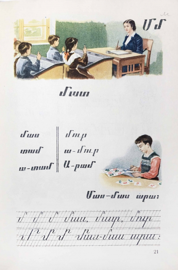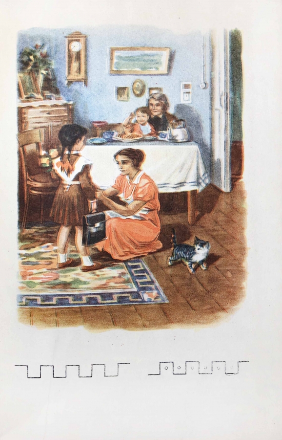 На каждой странице букваря — иллюстрация, отражающая дух эпохи. Как и большинство букварей все начинается с простых букв с картинками, которые постепенно переходят в слоги, слова, предложения и несложные тексты.