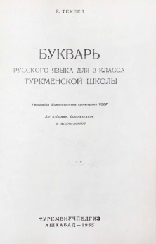 Букварь русского языка для второго класса туркменской начальной школы. Утвержден Министерством просвещения ТССР.