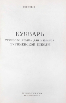 Букварь русского языка для второго класса туркменской начальной школы. Утвержден Министерством просвещения ТССР.