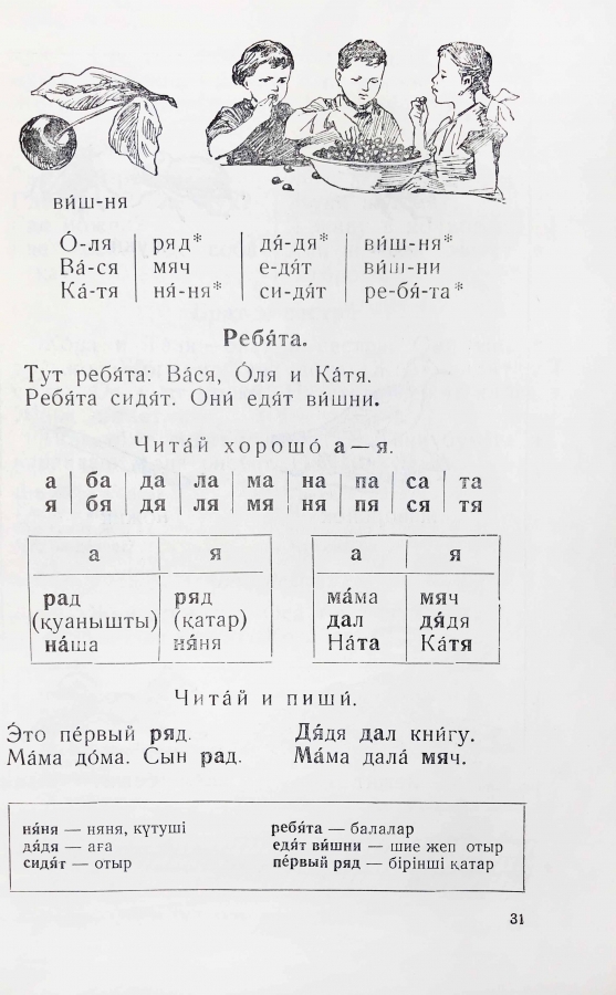Учебник русского языка для второго класса казахской начальной школы. В букваре все начинается с простых букв с картинками, которые постепенно переходят в слоги, слова, предложения и несложные тексты. В книге также множество иллюстраций и задания по каллиграфии.