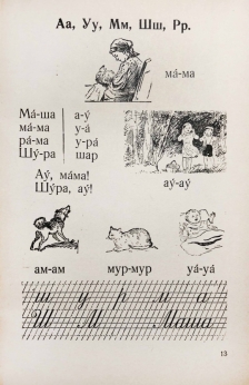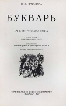 Букварь для первого класса начальной коми-пермяцкой школы. В букваре все начинается с простых букв с картинками, которые постепенно переходят в слоги, слова, предложения и несложные тексты. В книге также множество иллюстраций и задания по каллиграфии.