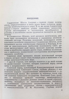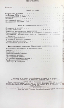 Настоящая книга даёт представление о Соединённых Штатах Америки — об американском народе и его культуре, о природе и естественных ресурсах США, об их экономике и государственном устройстве, о положении рабочего класса и фермерства, о политике правящих классов. Вполне отдавая себе отчёт в сложности этой задачи в отношении такой страны, как Соединённые Штаты Америки, автор не стремился исчерпывающе осветить каждую из сфер жизни, которых он касается в своей книге, и намеренно ограничил содержание последней только основными данными и наиболее существенными фактами, вмещающимися в рамки популярного издания.