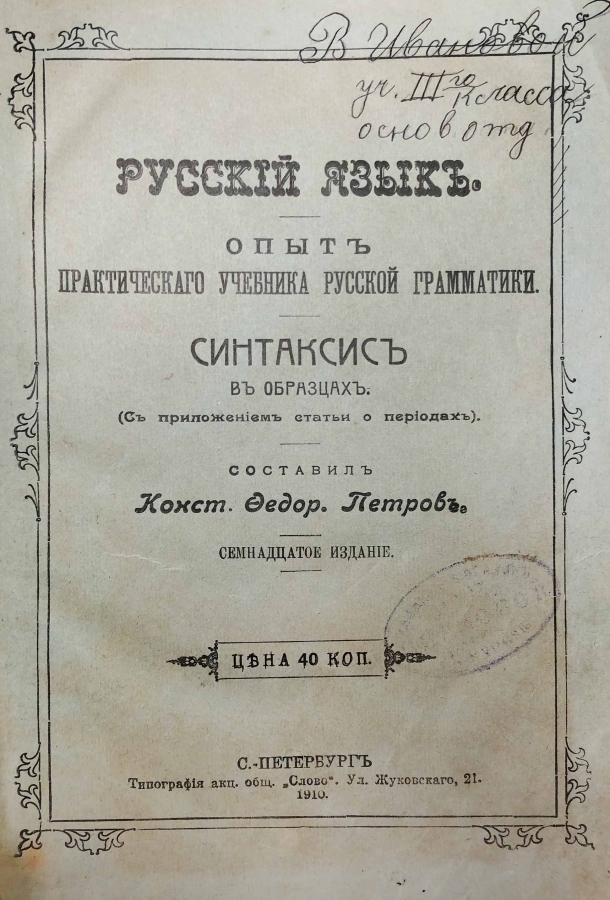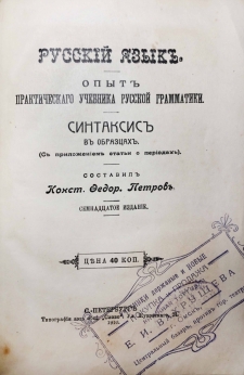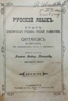 Полное название: Опыт практического учебника русской грамматики, синтаксис в образцах, с приложением статьи о периодах.
