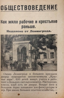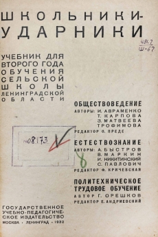 Учебник для второго года обучения в сельской школе. Книга разделена на отделы: Обществоведение, Естествознание и Политехнически трудовое обучение.