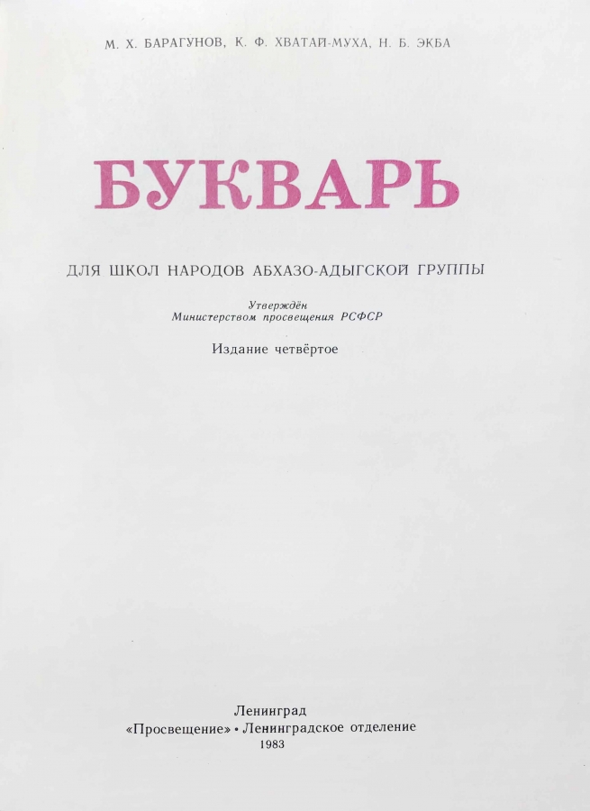 Букварь для школ народов абхазо-адыгской группы. Утверждён Министерством просвещения РСФСР.