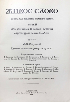 В предреволюционные годы появилось много работ, посвященных искусству звучащего слова. Многие из них имели в виду не только профессиональное искусство, но и школьное выразительное чтение. Были работы и специально посвященные школе. Из них наиболее интересна книга "Живое слово" А. Острогорского. Для всех, кто хочет вырастить интеллигентного, тонко чувствующего человека, научить читать по-настоящему, для души.