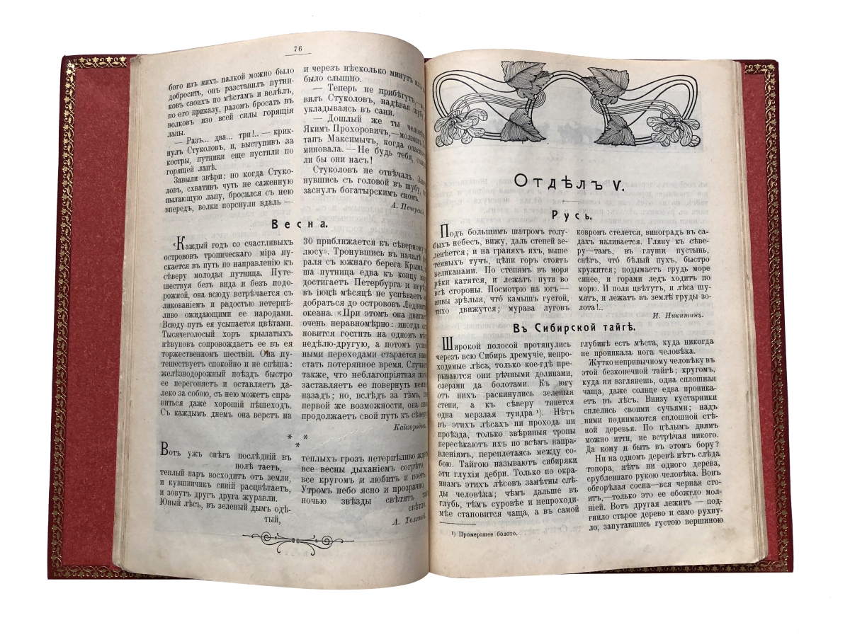 Цельнокожаный переплет с золотым тиснением.