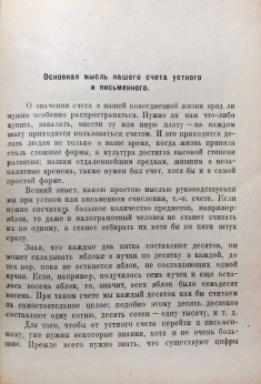 В этой книге рассказывается о том, как люди приобрели умение делать при помощи всего только десяти письменных знаков (цифр) все исчисления над числами любой величины. Этот маленький культурно-исторический очерк будет интересен для детей, познакомит с историей счисления, с далеким прошлым наших цифр, он возбудит в учащихся любознательность, сделает более глубоким интерес к арифметике.