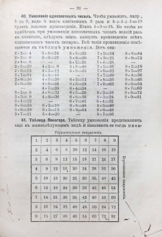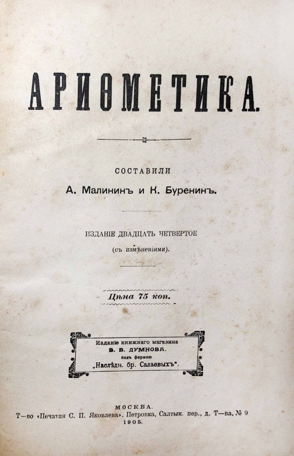 Учебник содержит основные арифметические понятия и операции. Переиздавался множество раз, поскольку был распространенным и отличался ясным изложением.