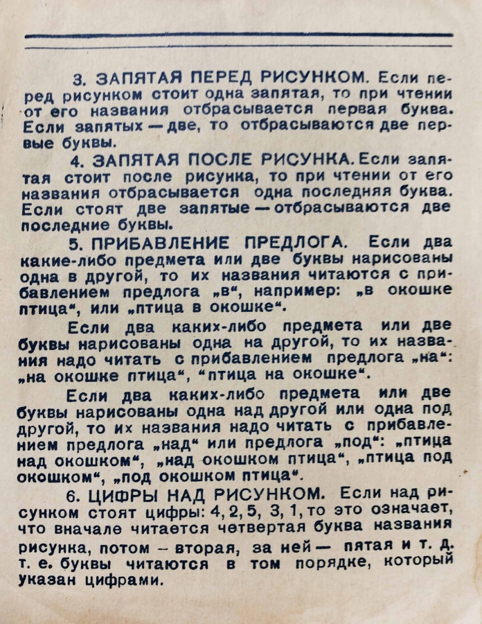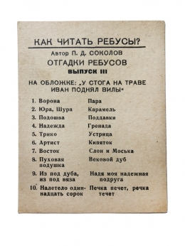 Детская игра — десять карточек с рисованными ребусами и одна карточка с ответами в издательской бумажной папке. В книжке рассказываются правила, как разгадать ребусы. Редкость!