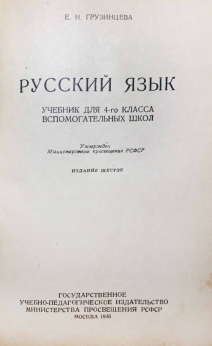 Учебник для 4 класса вспомогательной школы. Утвержден Министерством просвещения РСФСР. Содержание учебника направлено на обучение детей грамматике и развитию речи.