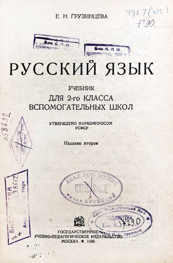Учебник для 2 класса вспомогательной школы. Утвержден Министерством просвещения РСФСР. Содержание учебника направлено на обучение детей грамматике и развитию речи.