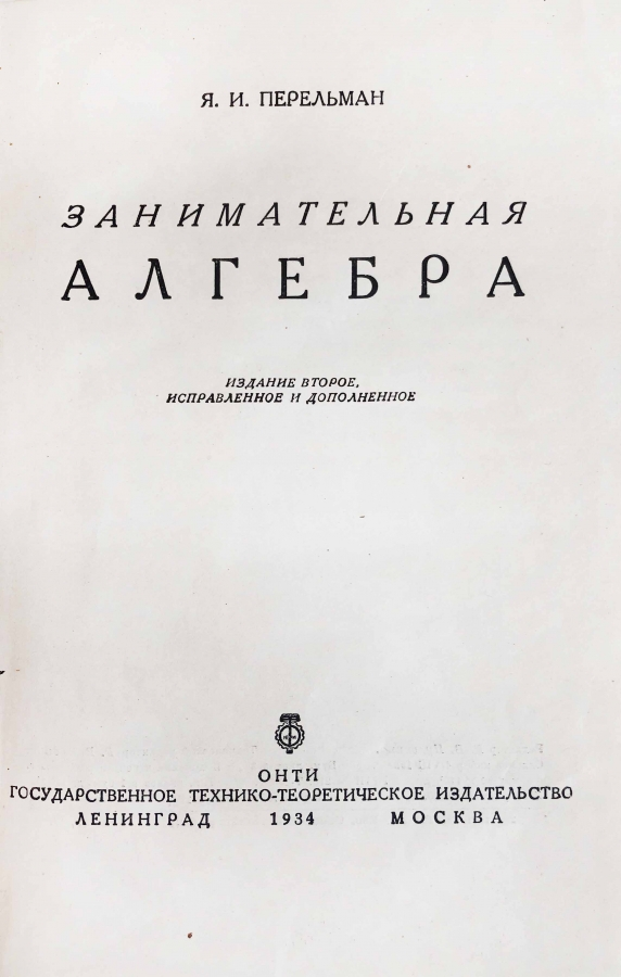 Книга "Занимательная алгебра"