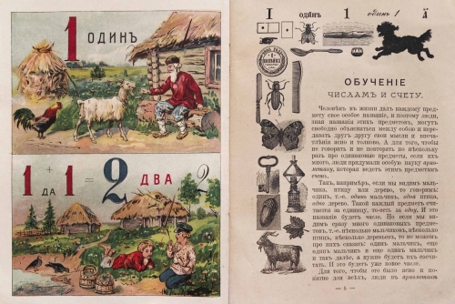 Книга с шестью раскрашенными картинами и 200 черно-белыми рисунками. Богато иллюстрированная издание со множеством примеров и задач для детей. Книга представляет историческую и культурную ценность!