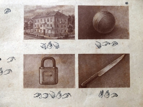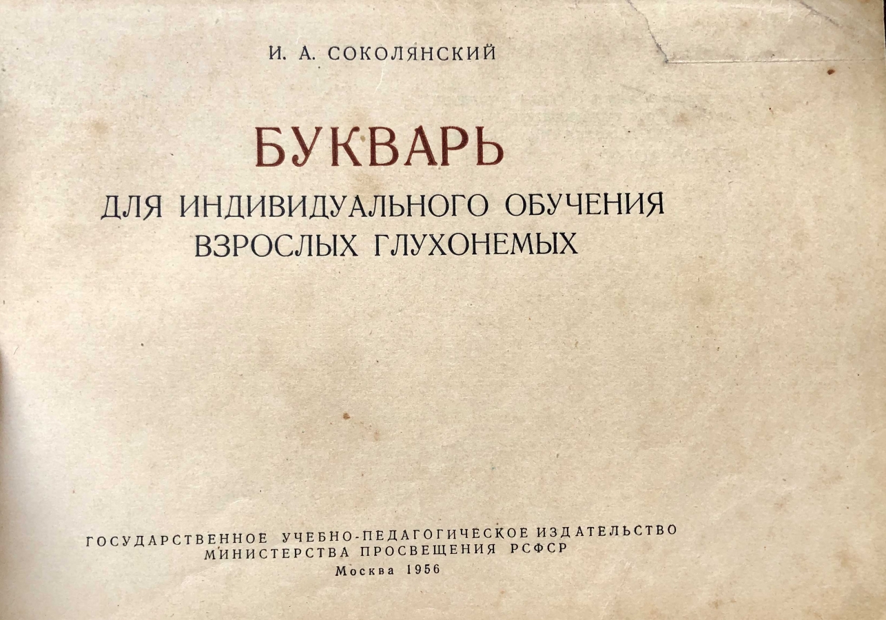 В советское время глухих обучали не только в школах, существовали особые программы обучения "взрослых глухонемых", проживавших в сельской местности и не имевших возможности посещать специальные школы. Известный педагог И. А Соколянский (1889–1960) составил для таких глухих букварь, благодаря которому "неграмотные глухонемые" должны были обучаться грамоте. Это позволило бы им общаться не только с "грамотными глухонемыми", но и со слышащими. Книга разделена на три части: добукварный период (учитель знакомится с учениками и беседует с ними, используя картинки букваря), букварный период (ученики изучают буквы), послебукварный период (ученики учатся составлять слова и предложения в письменном виде). С помощью такого букваря учитель узнавал какими жестами глухой обозначает те или иные предметы, затем знакомил учеников с пальцевой азбукой, а затем учил читать и писать. И. А. Соколянский много сделал и для обучения слепоглухих и, в целом, оказал большое влияние на развитие сурдопедагогики.