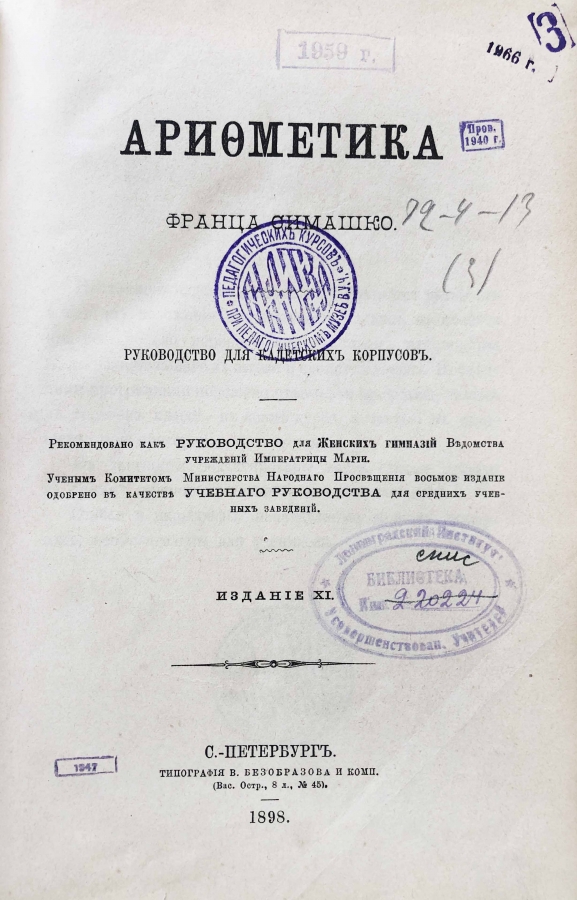 Книга "Арифметика" Руководство для кадетских корпусов