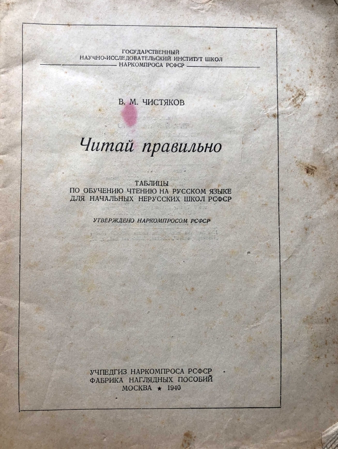 "Читай правильно" — таблицы по обучению чтению на русском языке для начальных нерусских школ РСФСР. В. М. Чистяков создал методику, построенную на принципах учета родного языка учащихся, и реализовал ее в своих учебниках. В преподавании русского языка в национальной школе он был среди первопроходцев. Его труды сыграли огромную роль в становлении методики преподавания русского языка в отечественной многонациональной школе. Книга представляет историческую и культурную ценность!