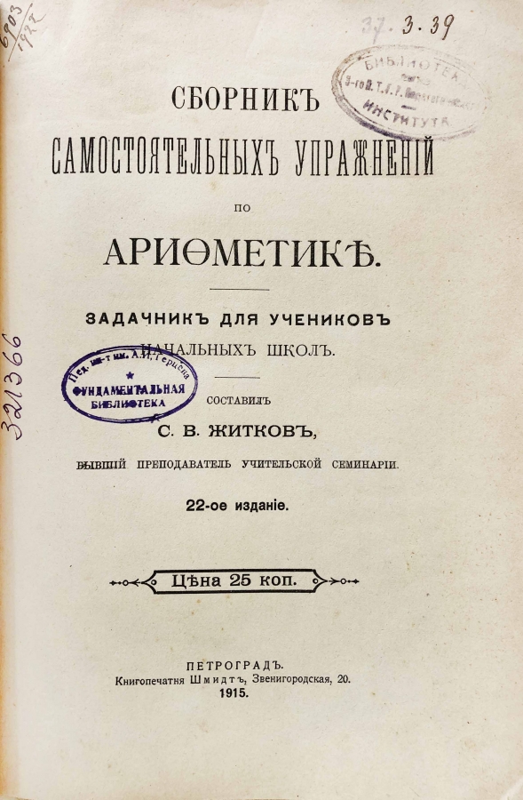 Книга "Сборник самостоятельных упражнений по арифметике"