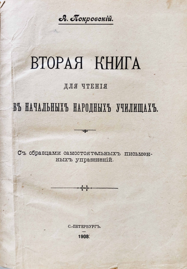 Вторая книга для чтения в начальных народных училищах с образцами письменных упражнений для самостоятельной работы.