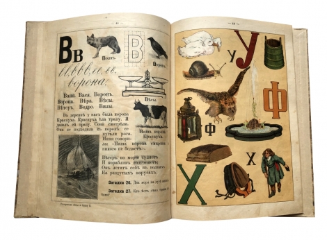 Азбука для детей 4-5 лет из интеллигентных семей. Каждая буква сопровождается коротеньким рассказом или стихотворением и загадкой к рисунку или слову, встречающемуся в тексте. В особом отделе дан материал для ознакомления ребенка со счетом и цифрами в пределе первого десятка. Книга представляет историческую и культурную ценность!