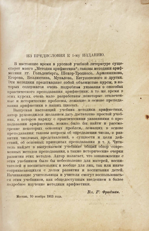 Учебник начала 20 века по арифметике, составленный В.Г. Фридманом.