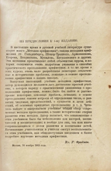 Из предисловия: Читатель найдет в выпускаемом учебнике общий обзор современных методов преподавания, а также исторические очерки развития этих методов. Автор полагает, что ознакомление с этим учебником было бы небесполезно для матерей, воспитателей и воспитательниц и вообще для лиц, так или иначе соприкасающихся с делом развития и воспитания детей. Начинающие учительницы и учителя смогут воспользоваться этим учебником, как общедоступным введением в более подробное изучение методики арифметики.