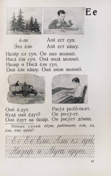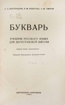 Учебник русского языка для 1 класса дагестанской школы. С черно-белыми иллюстрациями. Как и большинство букварей все начинается с простых букв с картинками, которые постепенно переходят в слоги, слова, предложения и несложные тексты.
