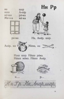 Учебник русского языка для второго класса уйгурской начальной школы. В букваре все начинается с простых букв с картинками, которые постепенно переходят в слоги, слова, предложения и несложные тексты. В книге также множество иллюстраций и задания по каллиграфии.
