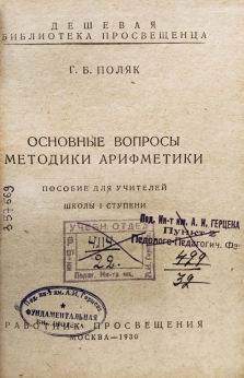 Книга "Основные вопросы методики арифметики" Пособие для учителей