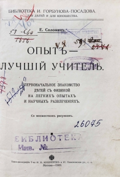 Первоначальное знакомство детей с физикой на легких опытах и научных развлечениях.