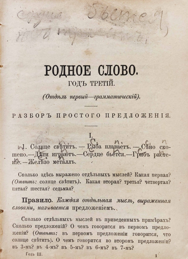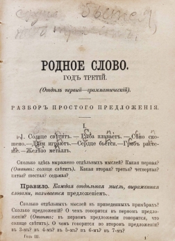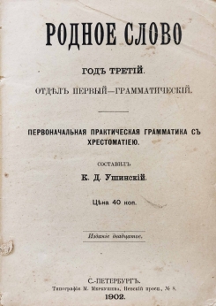 «Родное слово» К. Д. Ушинского является классической учебной книгой, предназначенной для детей младшего школьного возраста. Эта книга заключает в себе много нового как в методе, так и в приемах ученья. Родной язык понимается К. Д. Ушинским как продукт многовековой духовной жизни народа, его первый наставник. Об образовательном значении родного языка заговорили в России еще в самом начале XIX столетия Н. М. Карамзин, И. И. Мартынов, а в 30-х годах Е. О. Гугель сделал русский язык центральным учебным предметом, группирующим все содержание первоначального обучения вокруг себя. Взгляд Ушинского на значение родного языка в духовной жизни народа последовательно проведен им в его книге «Родное слово».