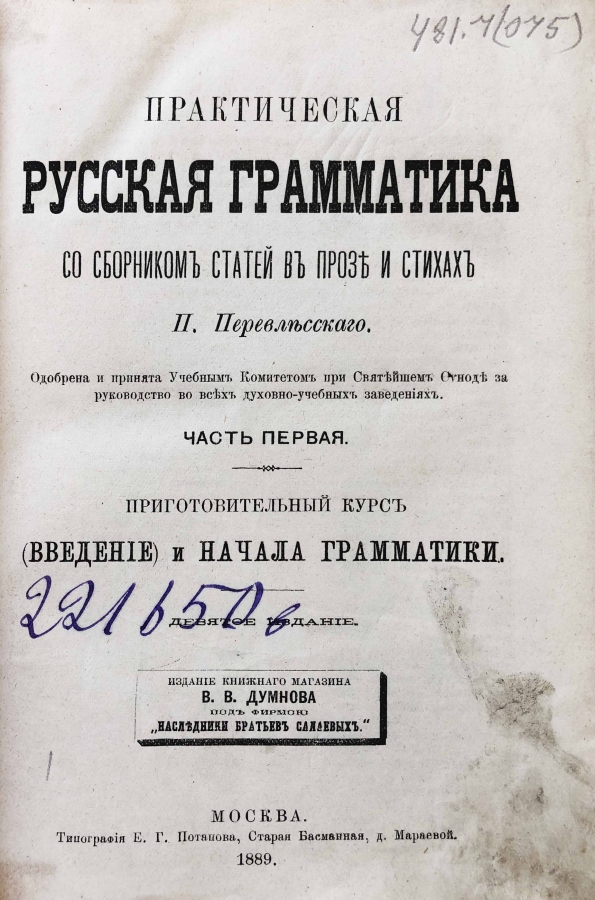 Москва: Издание книжного магазина В.В. Думнова под фирмою "Наследники братьевъ Салаевыхъ"