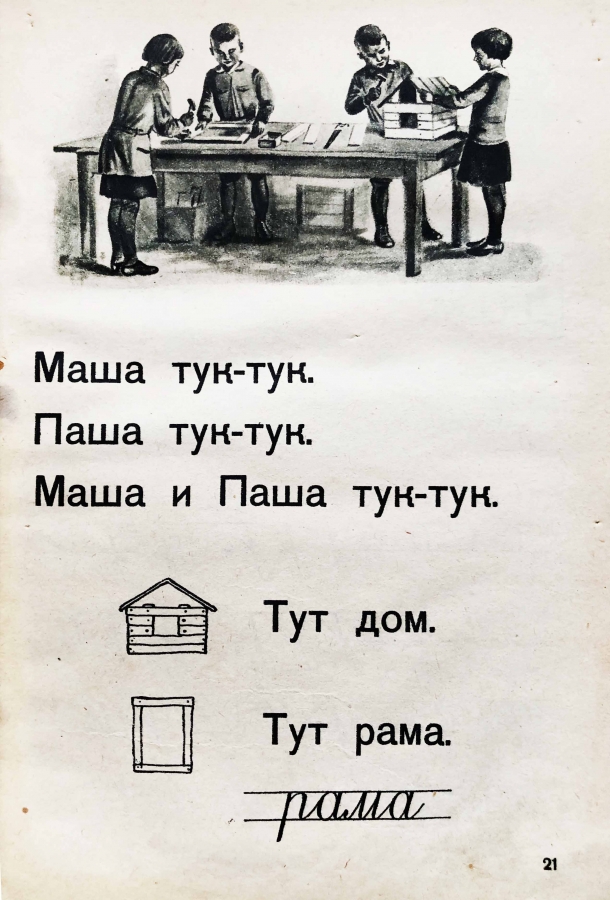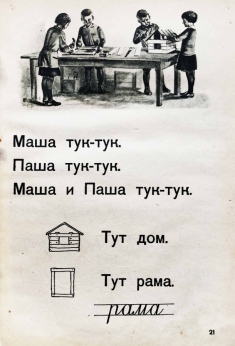 Букварь — это книга, которая первая давала советским детям образование, любовь к Родине, близким. Первые советские буквари, составленные по так называемому методу целых слов, были заменены в 1932 букварями, в которых восстанавливался звуковой аналитико-синтетической метод (П. О. Афанасьева, Н. А. Костина). С этого времени все буквари составлялись по этому методу.