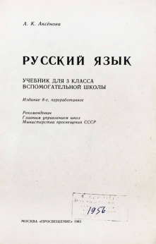 Русский язык — учебное пособие для третьего класса вспомогательной школы. Основная цель учебника — подготовить учащихся к усвоению элементарного курса грамматики и правописания.
