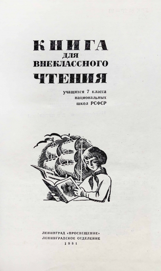 Книга "Книга для внеклассного чтения" 7 класс национальных школ РСФСР