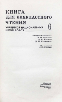 Книга "Книга для внеклассного чтения" 6 класс национальных школ РСФСР