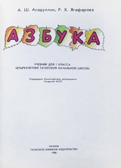 Учебник для 1 класса четырехлетней начальной татарской школы.