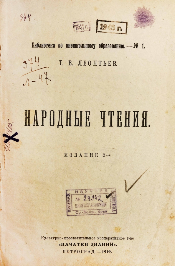 Тимофей Васильевич Леонтьев с 1900 по 1914 год работал учителем в Карелии. Участник Первой мировой войны. С 1917 по 1932 год вновь занимался педагогической деятельностью в Карелии, а позже в Ленинграде. Начиная с 1917 года, активно исследовал состояние внешкольного образования в стране. Одной из популярных форм распространения среди населения элементарных общеобразовательных, профессиональных и прикладных знаний были народные чтения. Данное издание активно использовалось в просветительских кружках и общественных организациях.